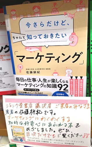 「ジュンク堂書店 藤沢店」さま(ビックカメラ藤沢店 7~8階)では、「マーケティング」のコーナーで、手書きポップとともに面陳してくださっていました。