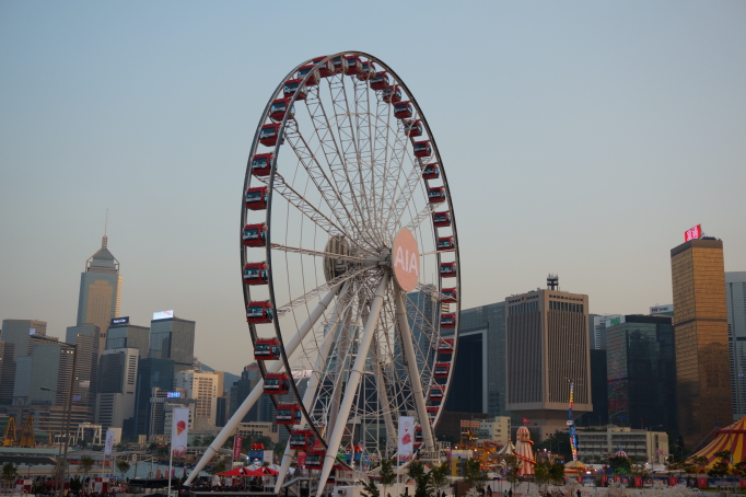 中環のランドマークになっている、「香港摩天輪」(Hong Kong Observation Wheel)という観覧車(2017年に撮影)。